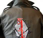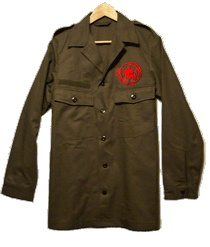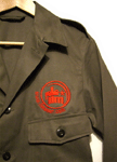 A brand new supa-tough, never-been-worn, heavy grade army issue shirt/jacket - with our trademark embroidered crest and groovy epaulets (somewhere to put your topee, or pin your hijab!). Plus, stitched above the right pocket there's a strip of loop-side Velcro (usually where you'd put your name and rank). Why not try writing a slogan, or even maybe the shahadah on the hook-side of piece of Velcro and stick it on!